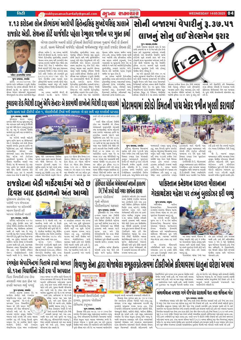 Rajkot 14-05-2025 Page: 4 May 14, 2025 2 3 4 Page 1Page 2Page 3Page 4 × Rajkot 14-05-2025 Mukhya Samachar Dt-14-05-2025_001Mukhya Samachar Dt-14-05-2025_002Mukhya Samachar Dt-14-05-2025_003Mukhya Samachar Dt-14-05-2025_004 Mukhya Samachar Dt-14-05-2025_001Mukhya Samachar Dt-14-05-2025_002Mukhya Samachar Dt-14-05-2025_003Mukhya Samachar Dt-14-05-2025_004