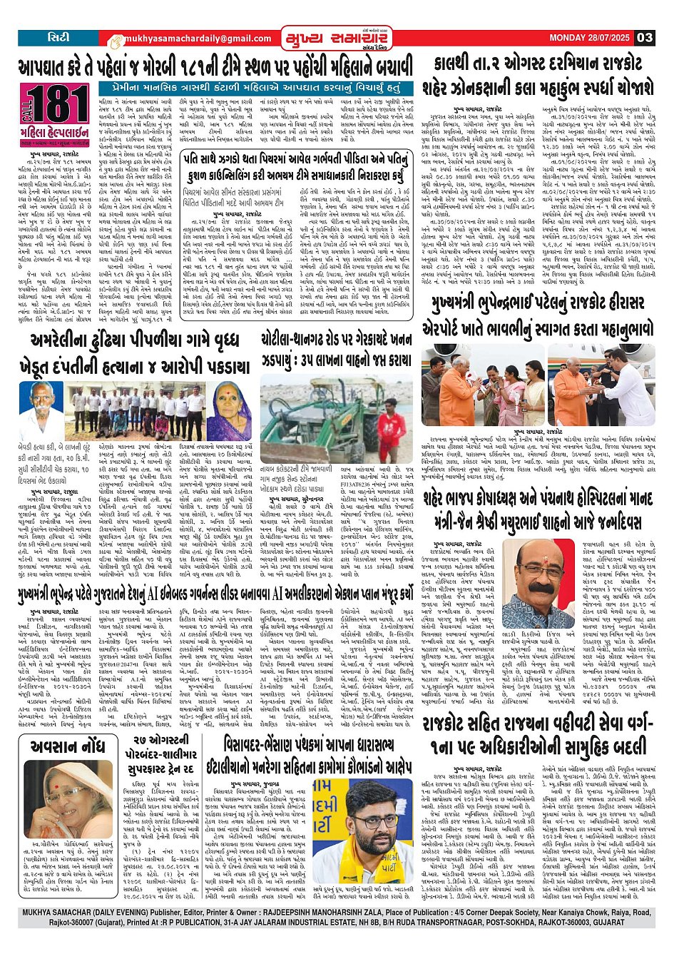Rajkot 28-07-2025 Page: 3 July 28, 2025 2 3 4 Page 1Page 2Page 3Page 4 × Rajkot 28-07-2025 Mukhya Samachar Dt-28-07-2025_001Mukhya Samachar Dt-28-07-2025_002Mukhya Samachar Dt-28-07-2025_003Mukhya Samachar Dt-28-07-2025_004 Mukhya Samachar Dt-28-07-2025_001Mukhya Samachar Dt-28-07-2025_002Mukhya Samachar Dt-28-07-2025_003Mukhya Samachar Dt-28-07-2025_004