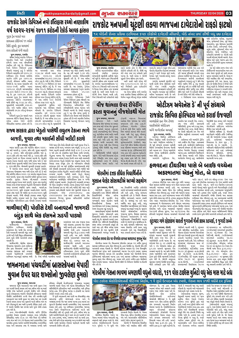 Rajkot 02-4-2026 Page: 3 April 02, 2026 2 3 4 Page 1Page 2Page 3Page 4 × Rajkot 02-4-2026 Mukhya Samachar Dt-02-04-2026_001Mukhya Samachar Dt-02-04-2026_002Mukhya Samachar Dt-02-04-2026_003Mukhya Samachar Dt-02-04-2026_004 Mukhya Samachar Dt-02-04-2026_001Mukhya Samachar Dt-02-04-2026_002Mukhya Samachar Dt-02-04-2026_003Mukhya Samachar Dt-02-04-2026_004